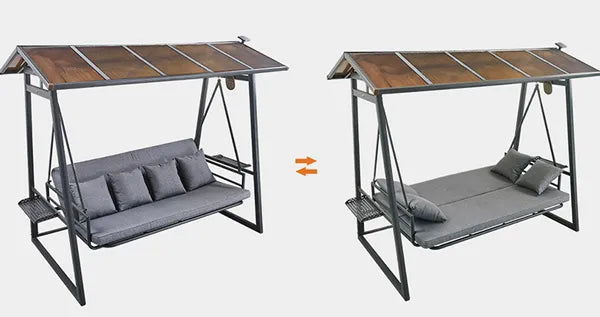 2-in-1 Convertible Chair:Â The backrest tilts to convert the swing into a comfortable, flat bed with a convenient side-locking mechanism, providing optimal comfort for outdoor relaxation.